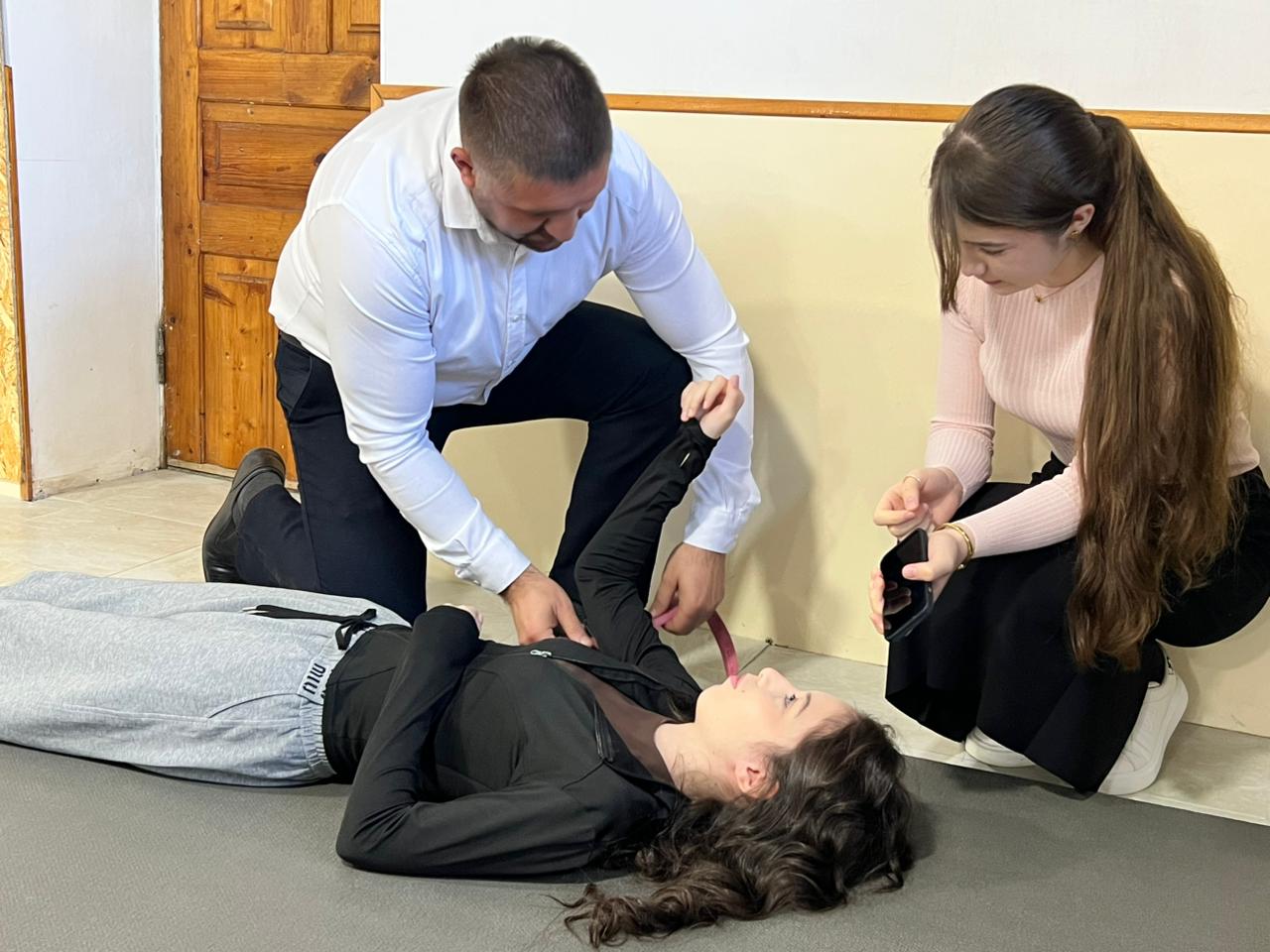 Мероприятие проводилось под руководством Османа Абдуразакова, который продемонстрировал правильные техники наложения повязок, остановки кровотечения и транспортировки пострадавшего. Занятие прошло в интерактивной форме, что позволило студентам за