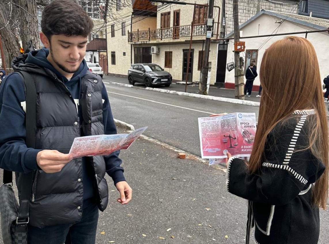 Студенты филиала ДГУ провели волонтерскую акцию «Жизнь со знаком «+», приуроченную к Международному дню отказа от курения. Мероприятие прошло в рамках ежегодной программы по пропаганде здорового образа жизни и привлечению внимания к последствиям табакокурения.