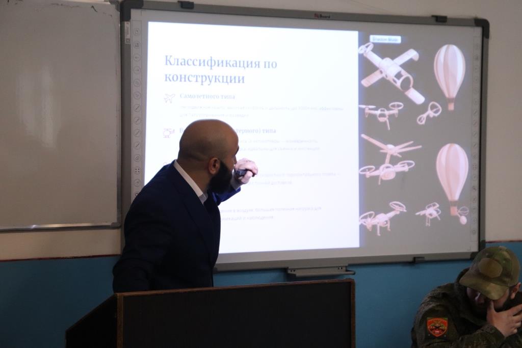 А. Джахиев подробно рассказал молодежи о том, как стремительно меняется современный формат ведения боевых действий и какую ключевую роль в нем играют БПЛА. В своем выступлении он призвал студентов рассмотреть возможность вступления в ряды специалистов беспилотных систем, где требуются технически грамотные и инициативные молодые кадры.